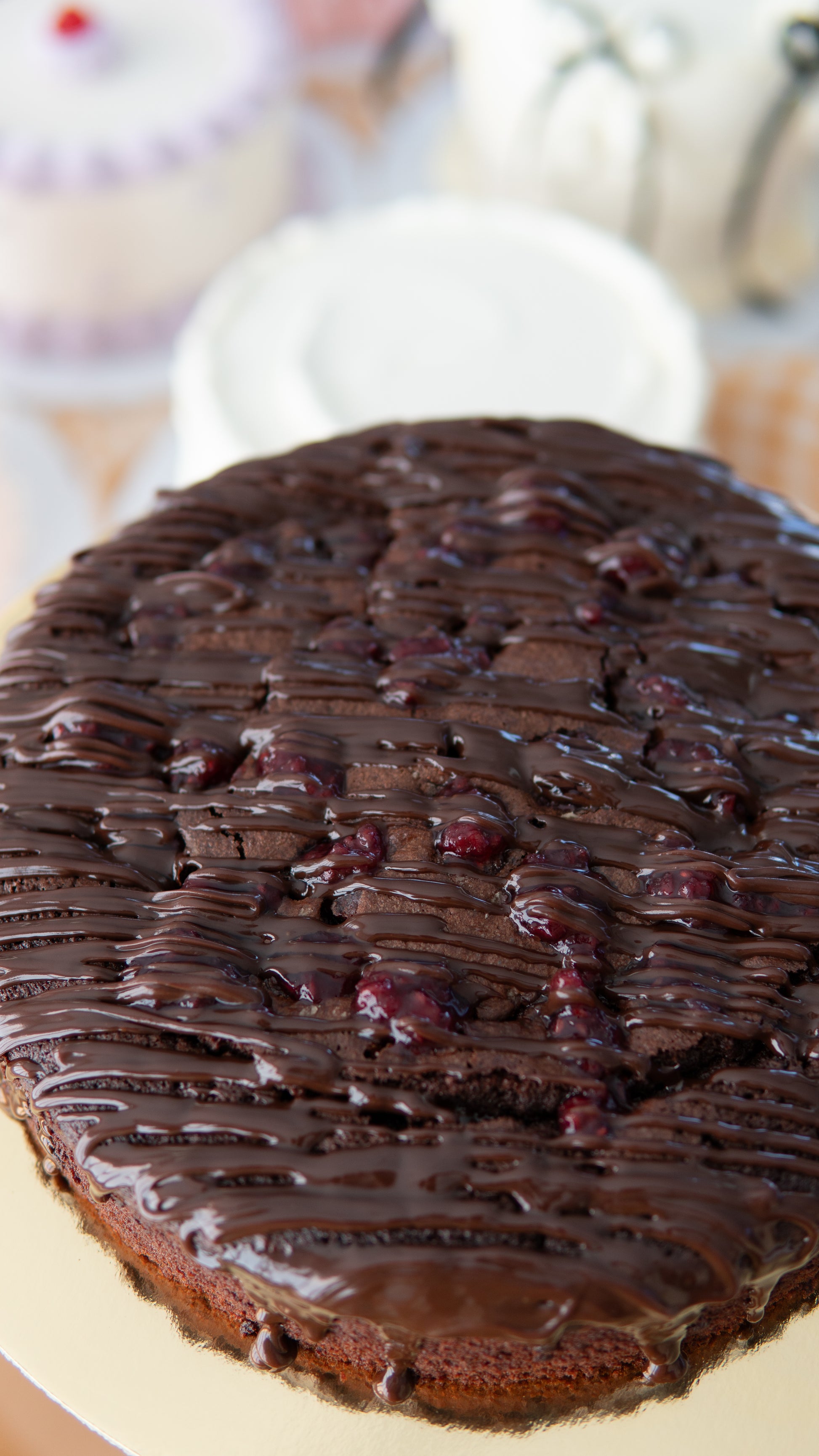 Our cult-favourite that keeps our lovely customers coming back for more! Decadently rich and intensely chocolatey, loaded with a whole punnet of raspberries for the perfect fruity balance. Finished with Couverture chocolate ganache - it's pure indulgence in every slice.