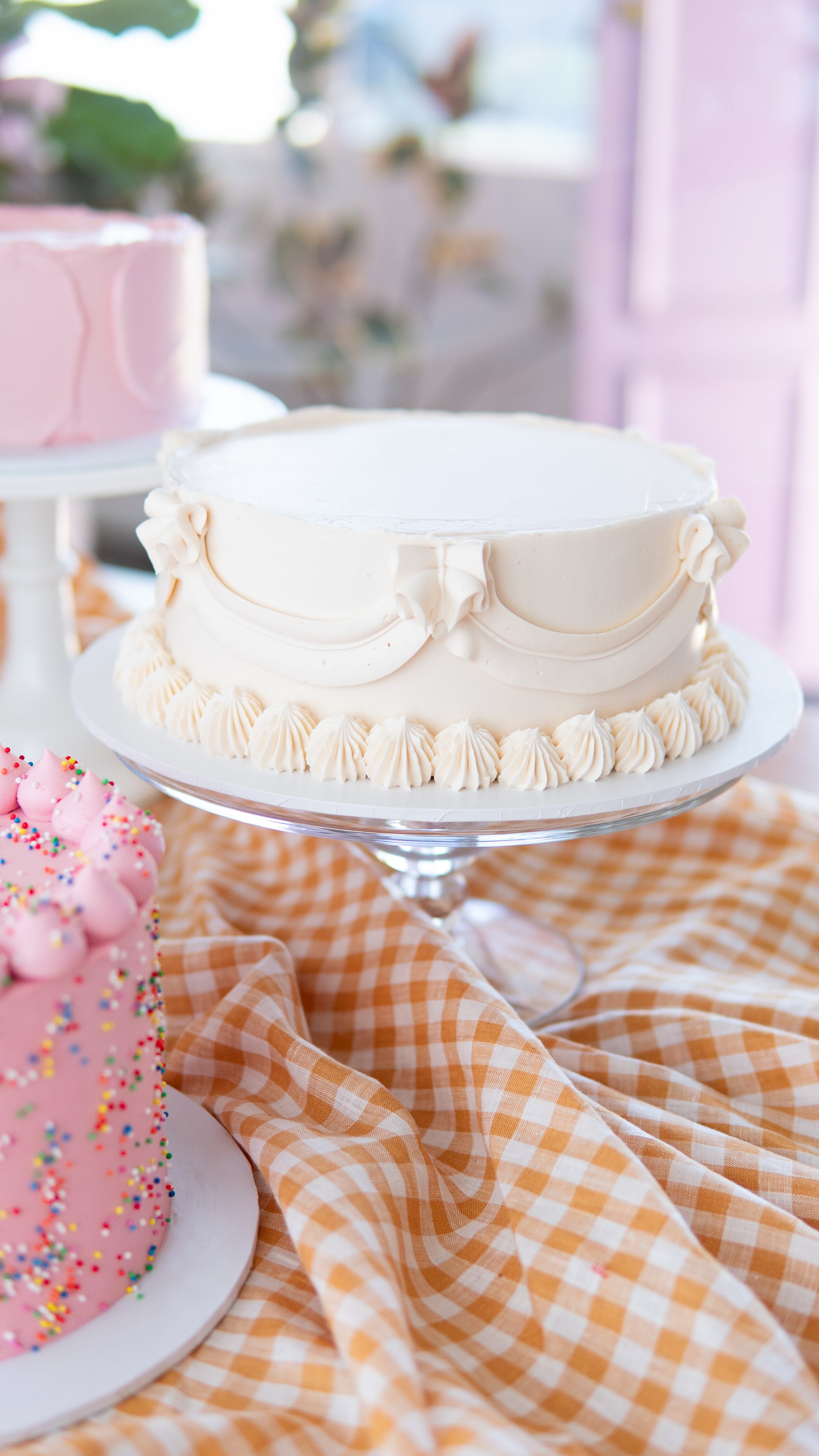 Inside, you'll find layers of buttery chocolate or vanilla cake (the choice is yours!) filled with silky swiss meringue buttercream, making every slice pure bliss.