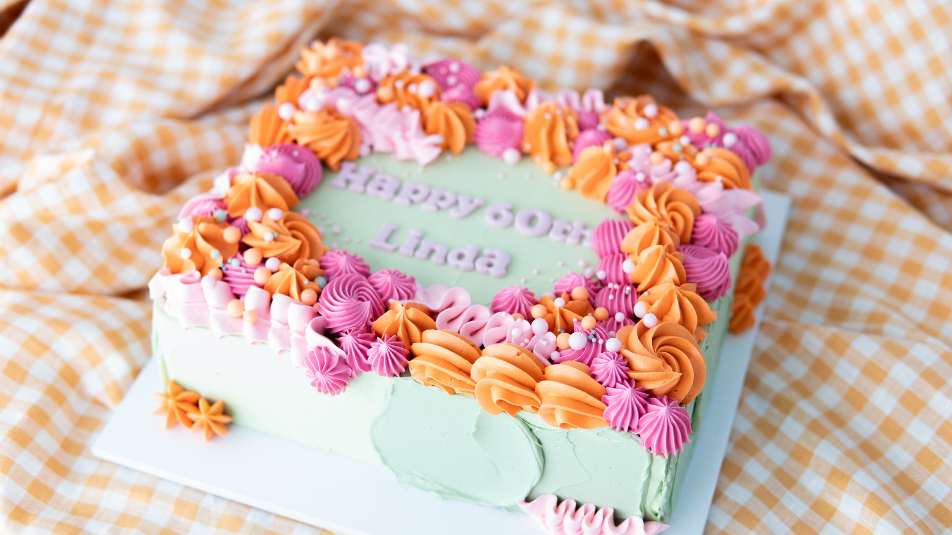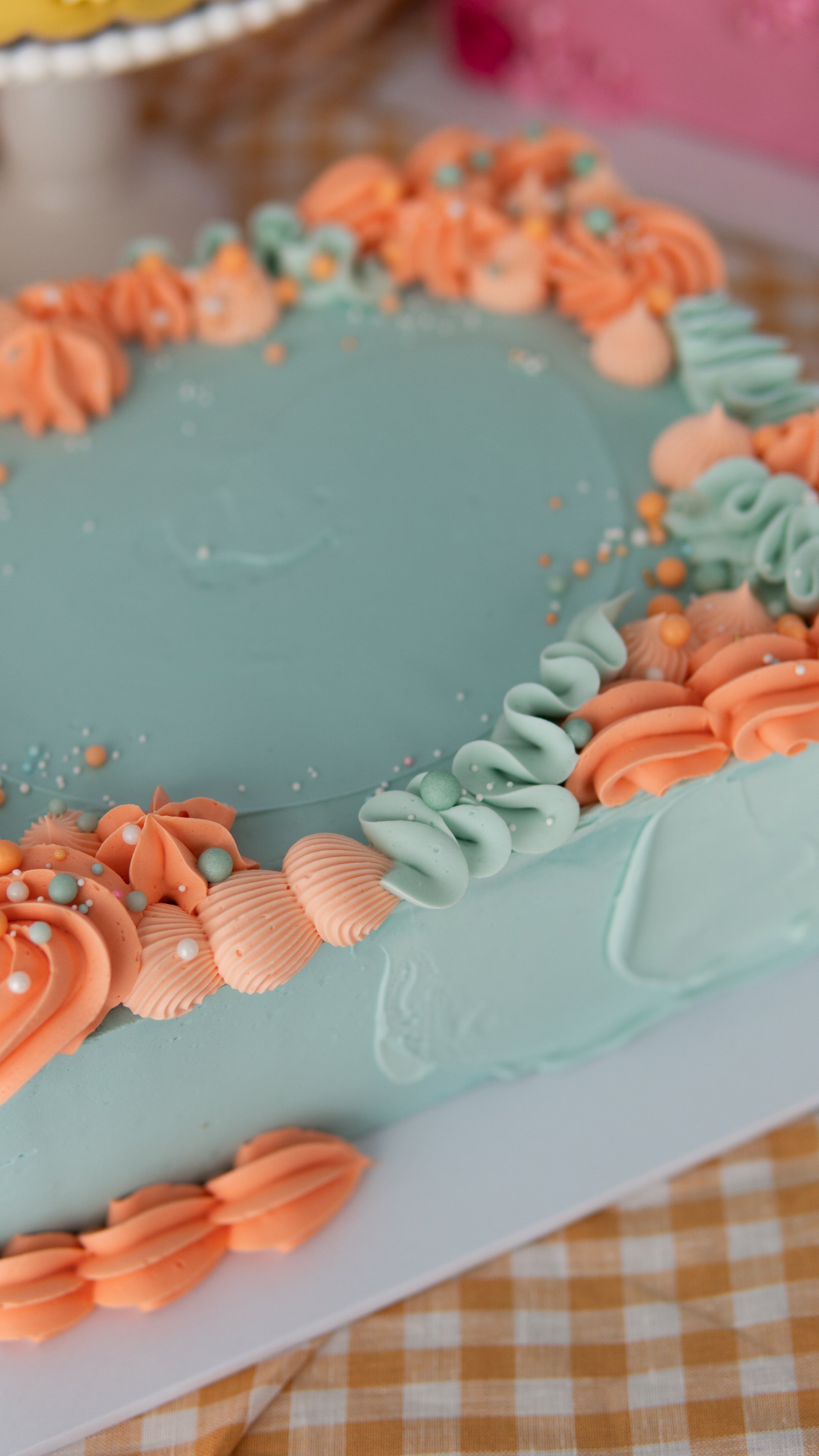 A fun party slab for your next event! Our buttery cake is decorated with delicate piped random puffs and squiggles of fun! Add sprinkles if you like, let us know your fav colours in the comments upon checkout